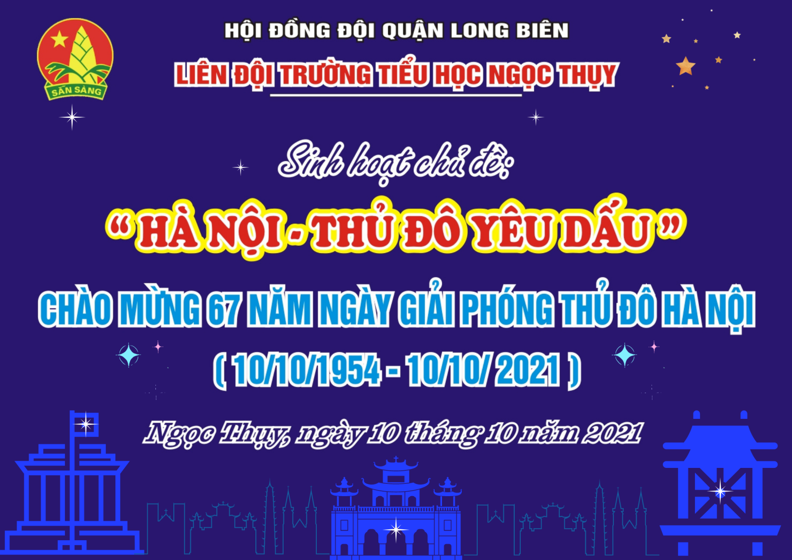 Hòa chung không khí chào mừng Chào mừng 67 năm Ngày Giải phóng Thủ đô Hà Nội (10/10/1954 – 10/10/2021), Liên đội Trường Tiểu học Ngọc Thụy tổ chức sinh hoạt chào cờ đầu tuần với chủ đề “ Hà Nội - Thủ đô yêu dấu”