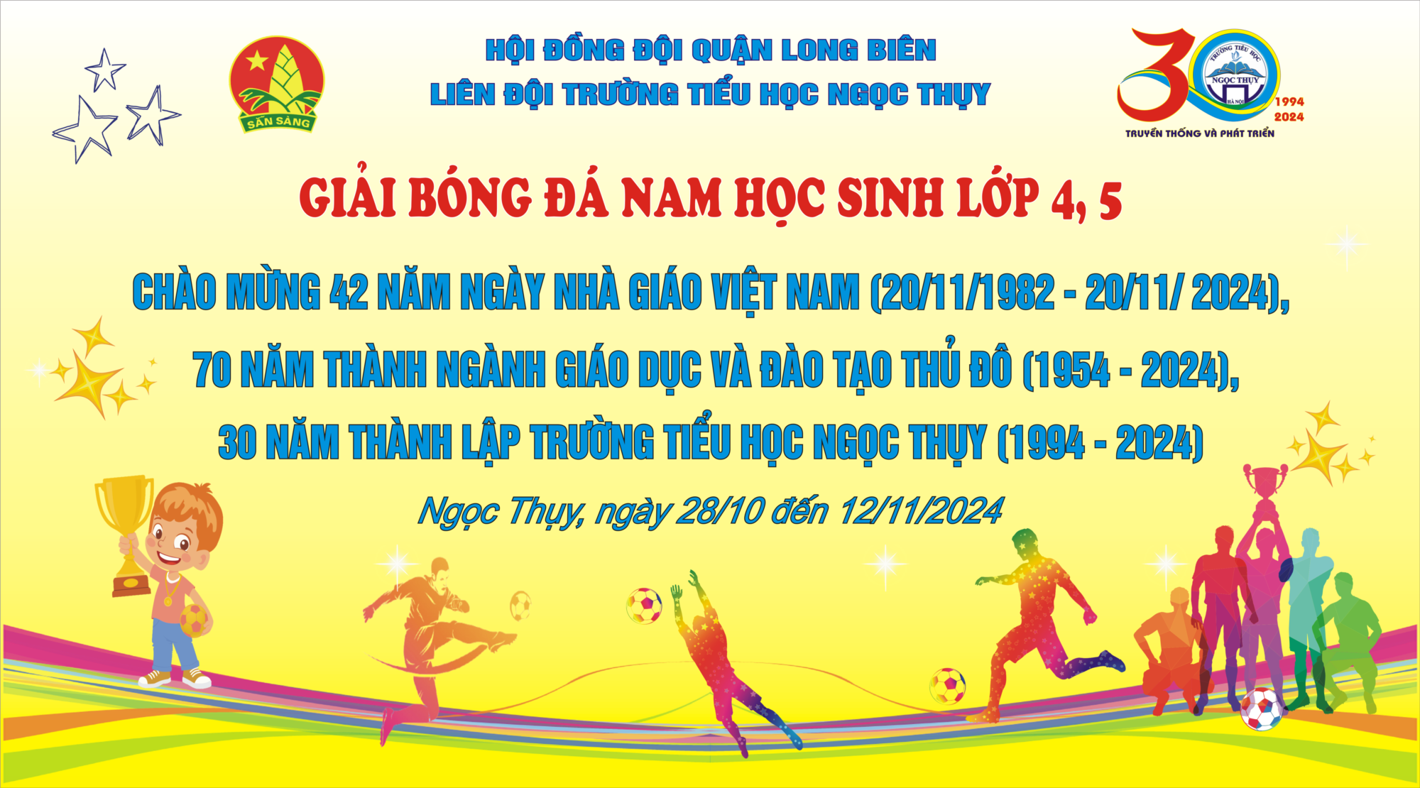 Trong không khí thi đua sôi nổi chào mừng 42 năm Ngày Nhà giáo Việt Nam (20/11/1982 - 20/11/2024; Chào mừng 70 năm thành lập Ngành Giáo dục và Đào tạo Thủ đô (1954 - 2024); Chào mừng 30 năm thành lập trường Tiểu học Ngọc Thụy (1994 - 2024).