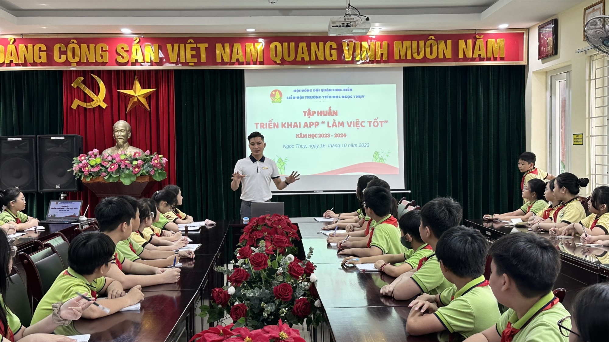 Hòa chung không khí thi đua chào mừng 69 năm Ngày Giải phóng Thủ đô Hà Nội (10/10/1954 – 10/10/2024). Thực hiện sự chỉ đạo của Hội đồng đội quận Long Biên, Ngày 16/10/2023, Liên đội Trường Tiểu học Ngọc Thụy tổ chức buổi tập huấn triển khai App “Làm việc tốt” năm học 2023 – 2024.