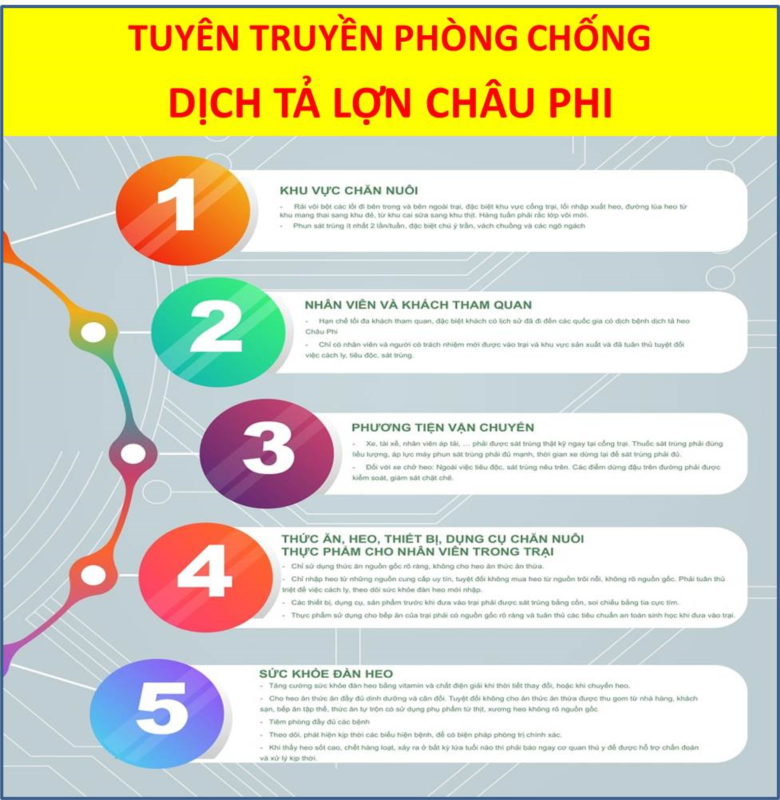 3. Tổ chức tổng vệ sinh, tiêu độc, khử trùng bằng hóa chất trên địa bàn theo kế hoạch của Thành phố; Bộ Nông nghiệp và PTNT phát động; kế hoạch của UBND quận tại các chợ, tụ điểm kinh doanh thịt lợn và sản phẩm thịt lợn, khu vực gom rác thải khu dân cư,… trên địa bàn.