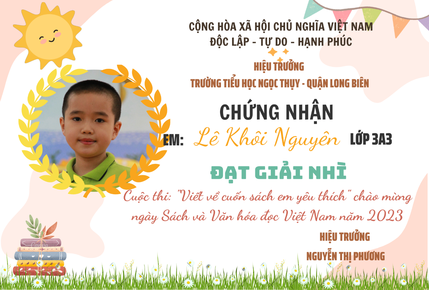 Em Lê Khôi Nguyên đạt giải Nhì cuộc thi “Viết về cuốn sách em yêu thích”