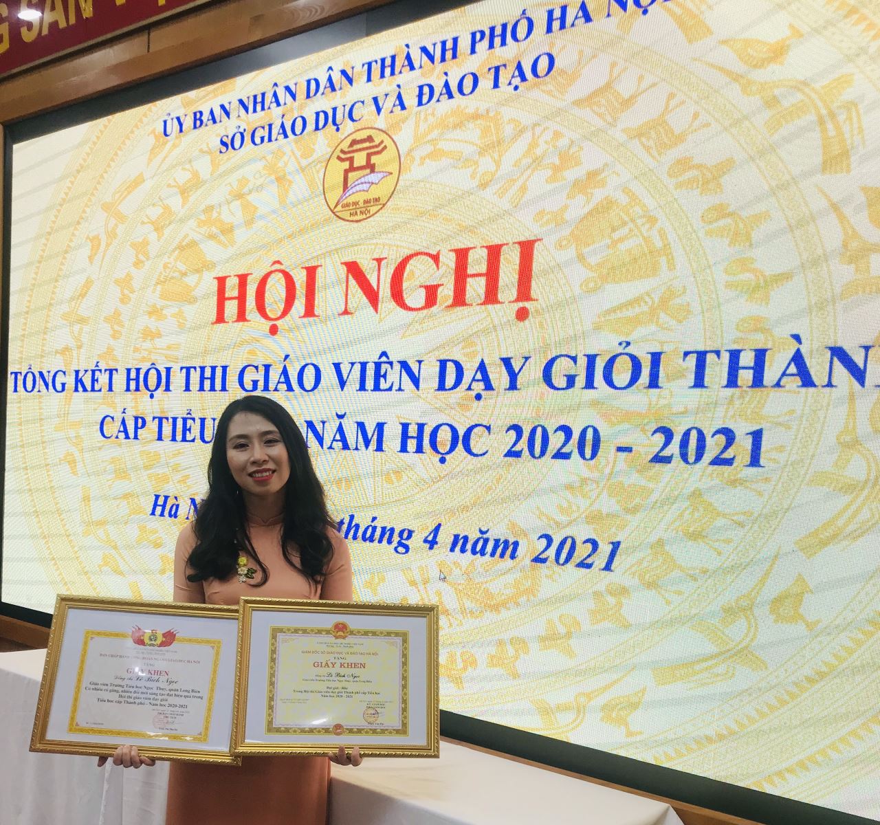 Cô !important; Ngọc ( bên trái) đạt giải Nhì- Giáo viên giỏi cấp Thành phố