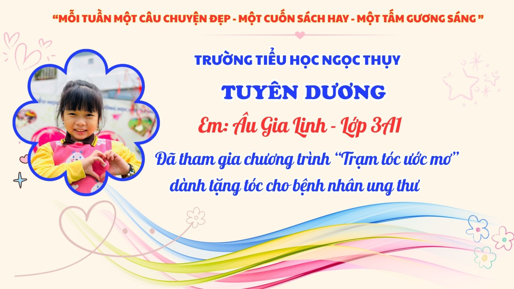 Hành động đẹp của em Âu Gia Linh đã tạo dấu ấn mạnh mẽ trong tập thể lớp 3A1 nói riêng và toàn trường Tiểu học Ngọc Thụy nói chung. Em xứng đáng được tuyên dương là tấm gương “Người tốt – Việc tốt” để các bạn nhỏ noi theo.