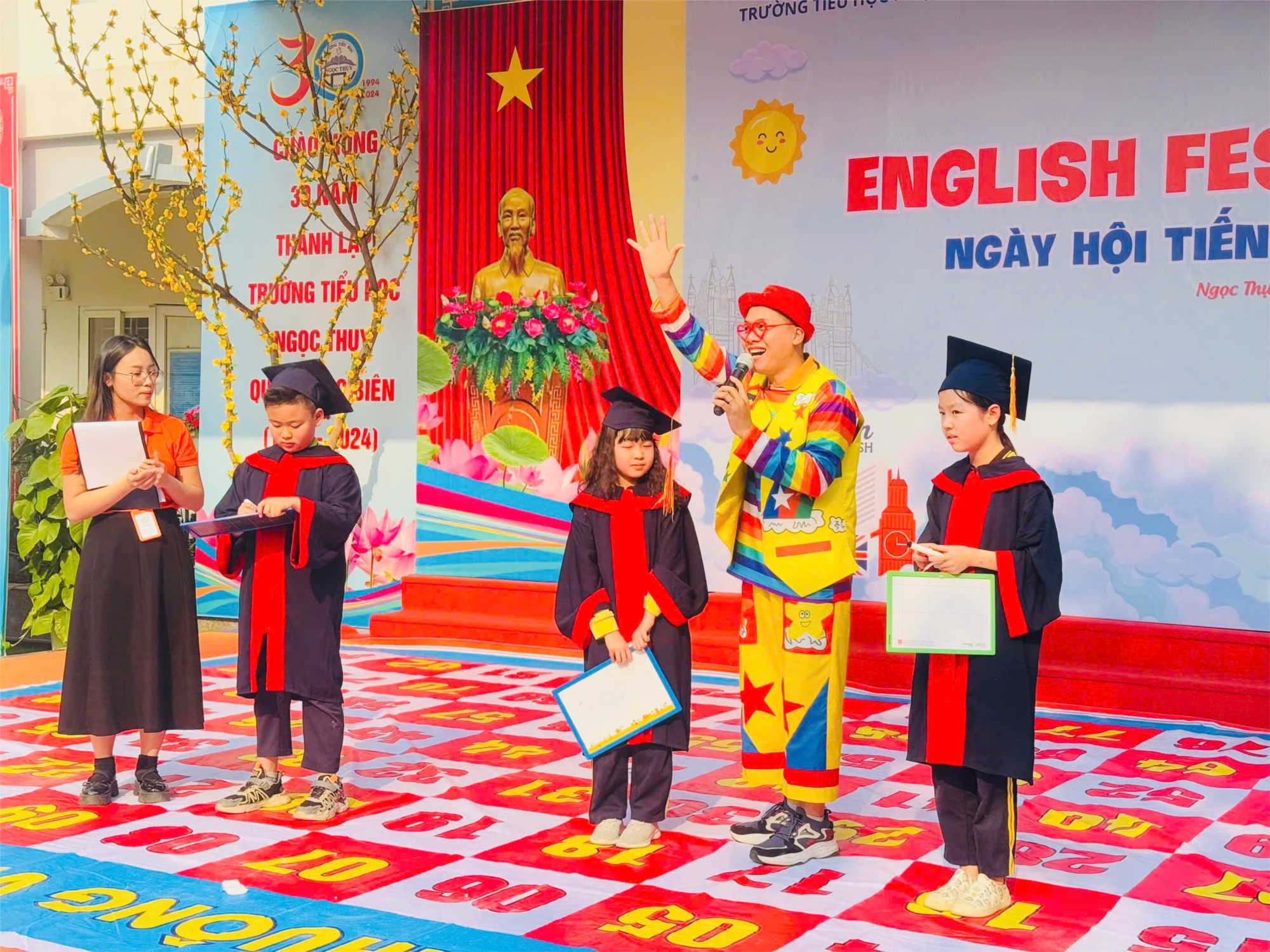 Bên cạnh đó, sự xuất hiện của chú hề vui nhộn đã làm khuấy động sân trường bằng những trò chơi vui nhộn, hài hước cùng những phần quà hấp dẫn, tạo nên những tràng cười sảng khoái và để lại nhiều kỷ niệm đẹp.