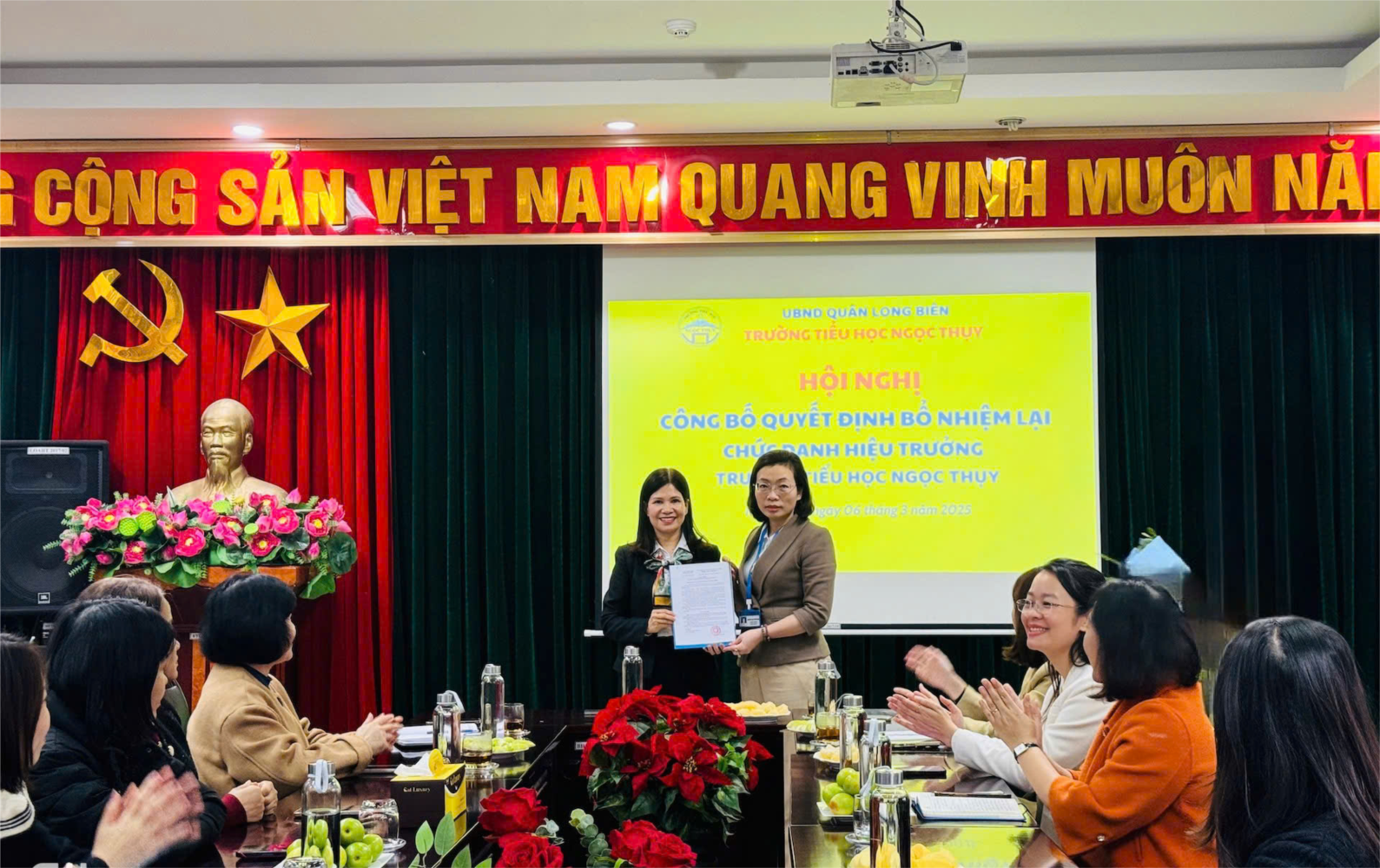Ngày 06/3/2025, trường Tiểu học Ngọc Thụy tổ chức Hội nghị Công bố quyết định bổ nhiệm lại chức danh Hiệu trưởng trường Tiểu học Ngọc Thụy.
