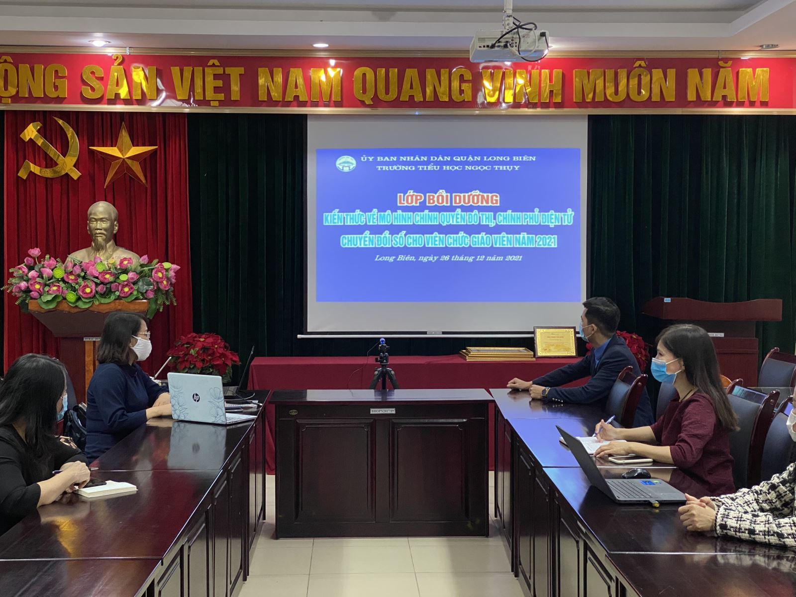 Sáng ngày 26/12/2021, tập thể CB,GV,NV Trường Tiểu học Ngọc Thụy tham dự đầy đủ “ Lớp bồi dưỡng kiến thức về mô hình chính quyền đô thị, chính phủ điện tử, chuyển đổi số cho viên chức giáo viên năm 2021” bằng hình thức trực tuyến .