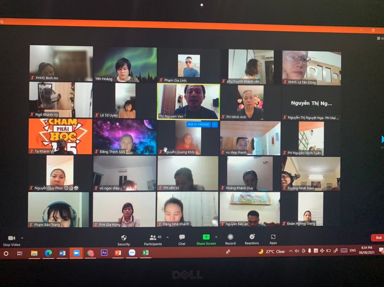 Cô giáo Hoàng Yến (4A5) cùng các bậc phụ huynh họp trực tuyến