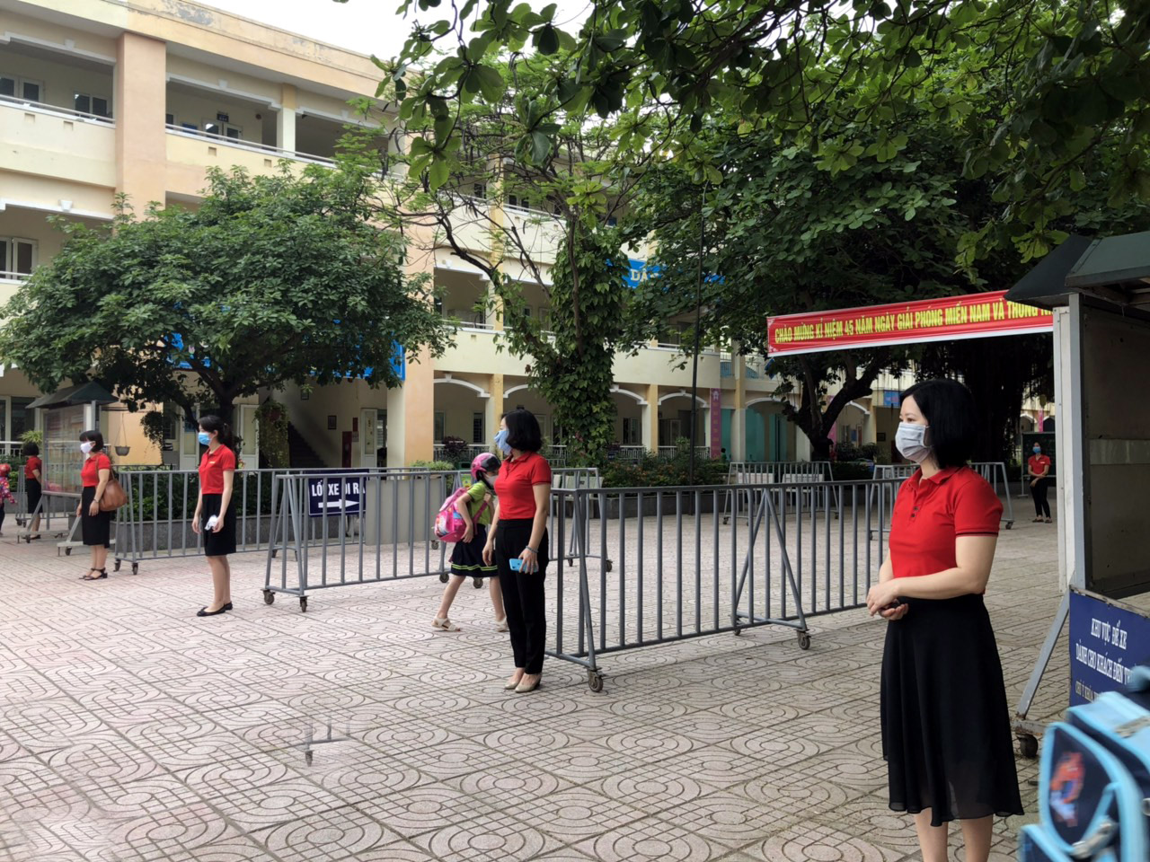 Để chuẩn bị tốt cho công tác đón HS, BGH nhà trường đã phân công GV, NV phụ trách các bộ phận theo ba tuyến. Tuyến đầu là bộ phận bảo vệ và tổng phụ trách thực hiện hướng dẫn phụ huynh dừng đỗ xe ở phía ngoài cổng trường chính, đồng thời điều tiết giao thông tránh ùn tắc bằng hệ thống loa đài. Tuyến giữa gồm các đồng chí GV, NV tổ bộ môn hướng dẫn các em HS di chuyển về khu vực lớp học của mình và thường xuyên nhắc nhở các em giữ khoảng cánh với bạn kế bên hoặc rửa tay, sát khuẩn trước khi vào lớp. Tuyến cuối là các đồng chí GVCN có nhiệm vụ đón HS, đo thân nhiệt đầu giờ và sắp xếp vị trí ngồi cho các em HS.