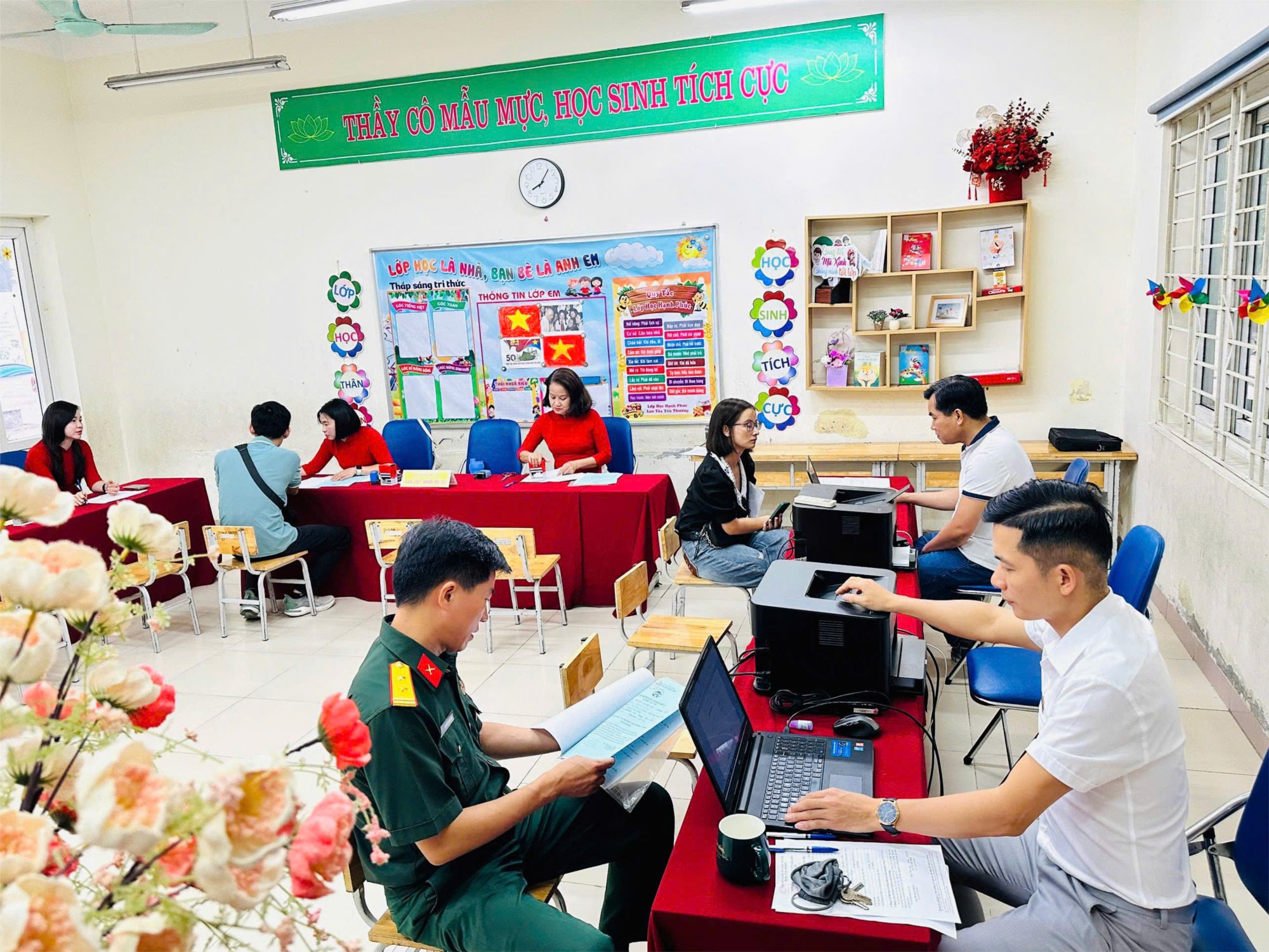 Để hỗ trợ tốt nhất cho phụ huynh học sinh đến đăng ký tuyển sinh, ngay sau khi kết thúc năm học 2024-2025, Ban giám hiệu nhà trường đã xây dựng kế hoạch tuyển sinh lớp 1 chi tiết cho năm học 2025-2026, đồng thời thành lập Ban tuyển sinh và phân công nhiệm vụ cụ thể tới từng CB, GV, NV.