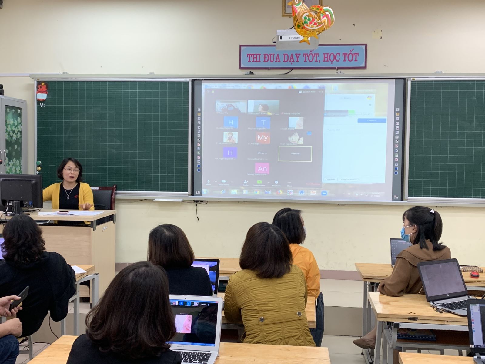 Sau phần hướng dẫn, các tổ chuyên môn chia thành các nhóm khác nhau và thực hành tương tác trên phần mềm. Ban giám hiệu nhà trường chỉ đạo GV sau khi sử dụng thành thạo, bắt đầu triển khai hướng dẫn CMHS cài đặt và tương tác nhằm đảm bảo cho HS được ôn luyện và tiếp cận thêm kiến thức trong quá trình nghỉ tránh dịch dài ngày.