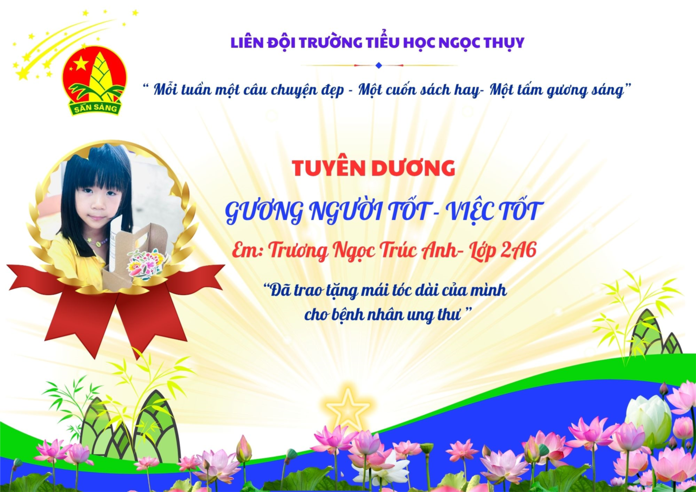 Từ những việc làm giản dị như vậy, hi vọng Trúc Anh nói riêng và các bạn nhỏ nói chung sẽ lớn lên với trái tim biết yêu thương và sẵn sàng giúp đỡ người khác.