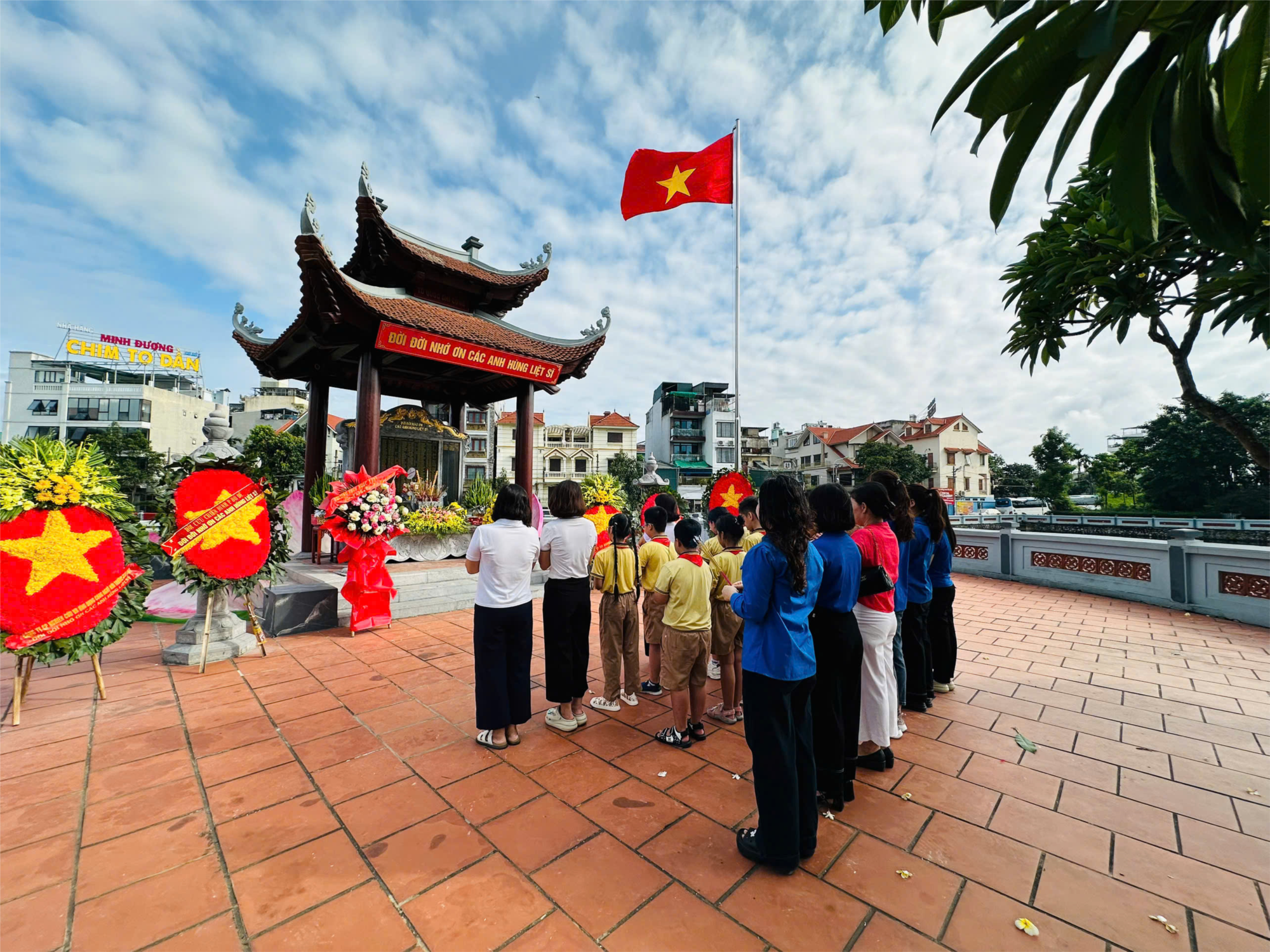 Ngay sau đó, đoàn tiếp tục đến dâng hương tại Đài tưởng niệm các Anh hùng Liệt sĩ Ngọc Thụy. Dưới ánh nắng dịu buổi sớm, hàng chục ánh mắt học trò lặng đi trước những dòng tên khắc trên bia đá. Mỗi cái tên là một cuộc đời, một câu chuyện về lòng yêu nước, về sự hy sinh thầm lặng mà cao cả.