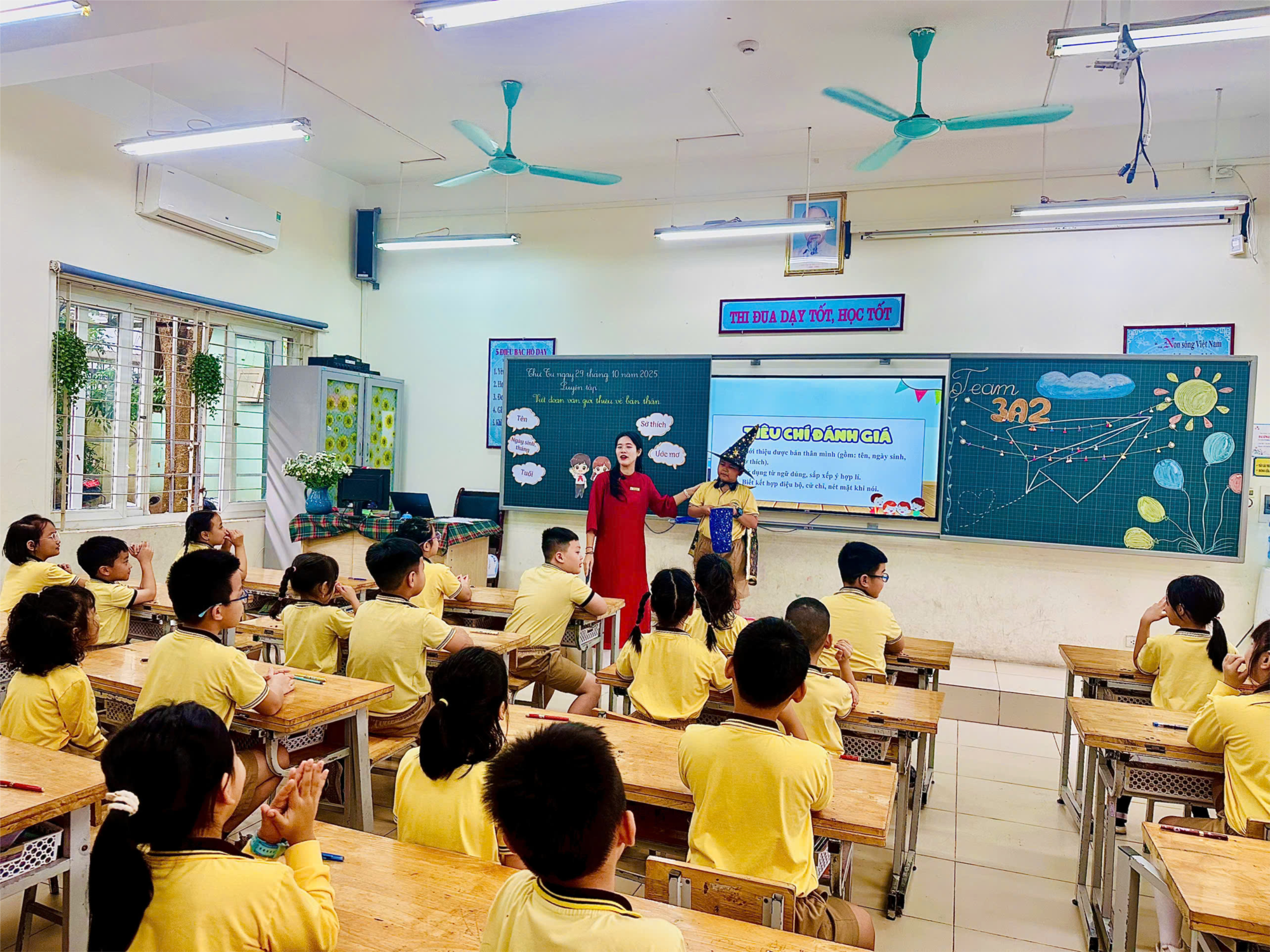 Nhờ áp dụng kỹ thuật dạy học “băng chuyền”, các con học sinh được luân phiên trải nghiệm nhiều hình thức học tập, rèn luyện kỹ năng viết, giao tiếp và làm việc nhóm. Sự kết hợp giữa AI và kỹ thuật dạy học tích cực đã mang đến tiết học sôi nổi, hấp dẫn và hiệu quả.